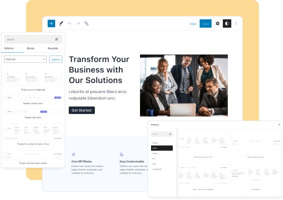 Block patterns are pre-designed block layouts that we can easily insert into their content. These patterns can help to save time and create visually appealing designs. Allows us to create custom themes using the block-based template.
